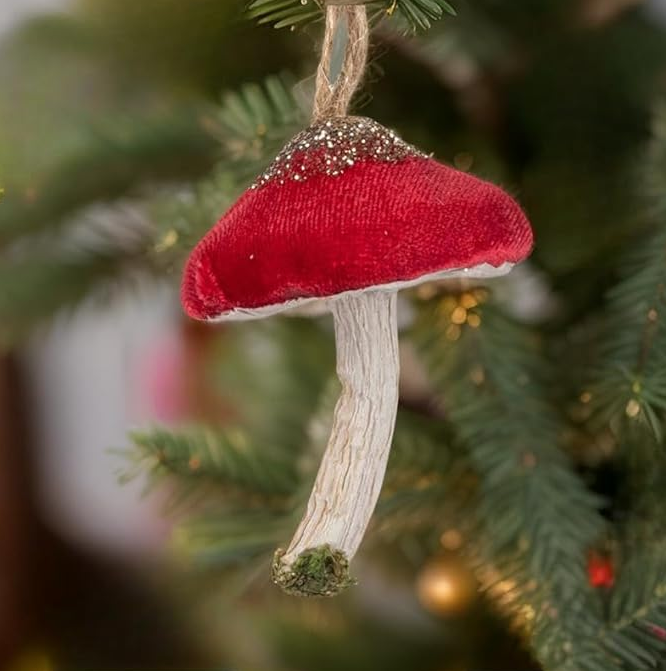 This red velvet mushroom ornaments offer a touch of playful charm and nature-inspired elegance to your Christmas tree. The vibrant color and realistic design create an enchanting atmosphere, transforming your tree into a whimsical woodland wonderland.