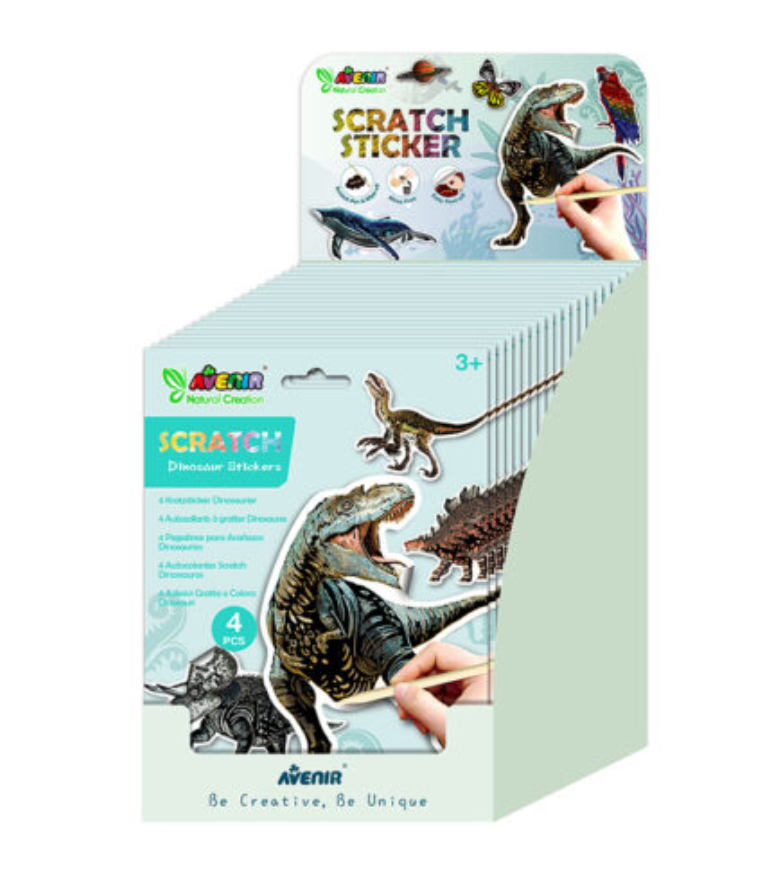 The Scratch Sticker Dino set is great interactive decor for your dinosaur loving friends!