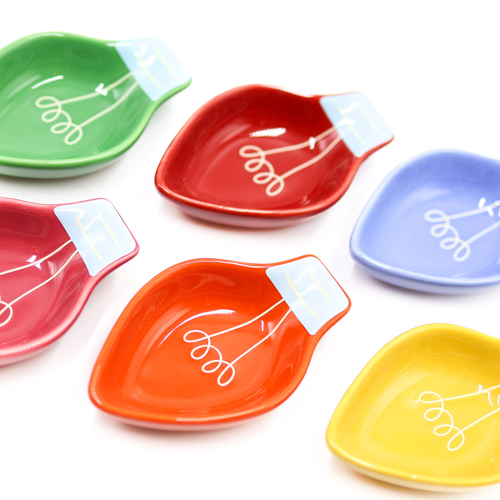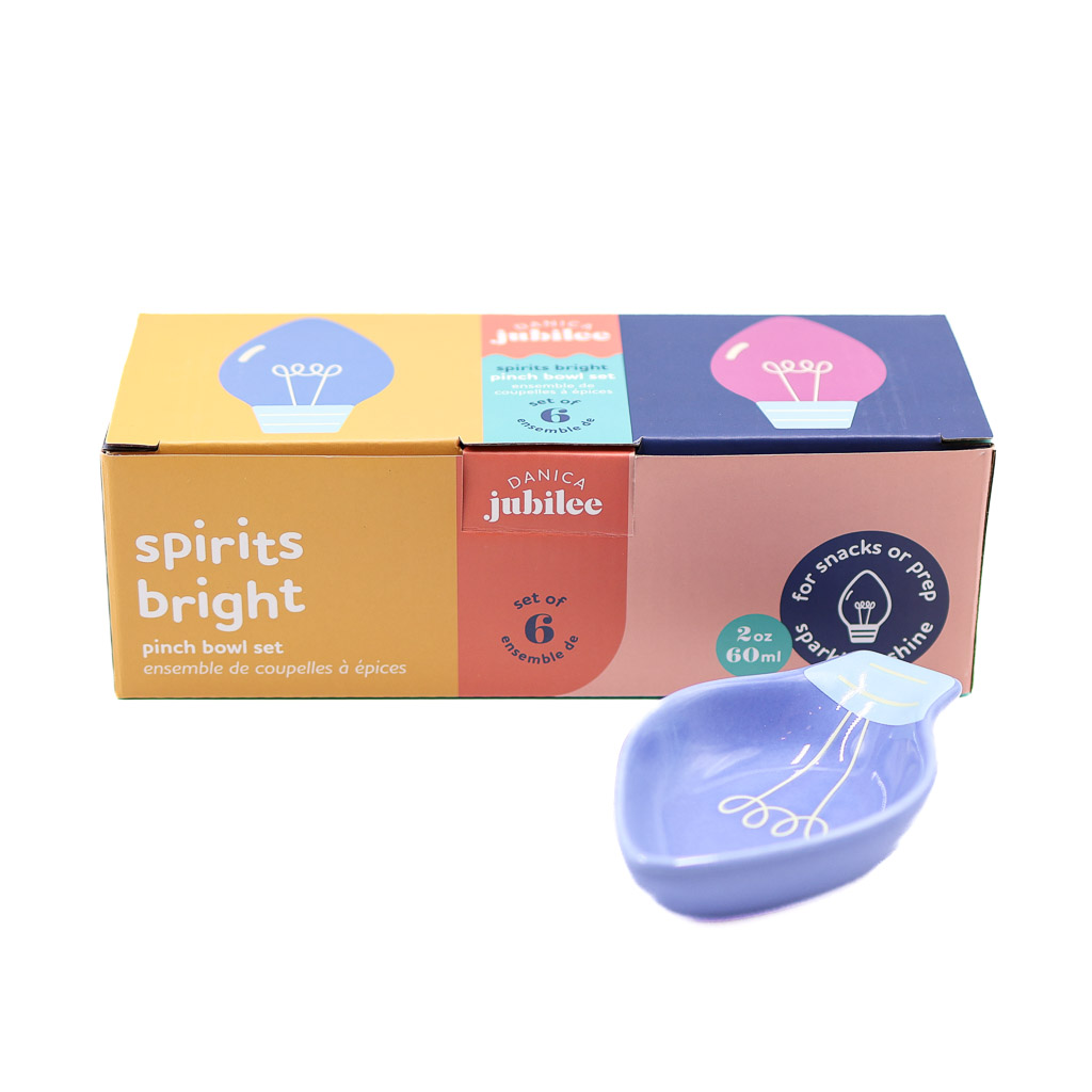 These “Spirits Bright” vibrantly coloured pinch bowls are shaped to look like decorative string lights for the holiday season.