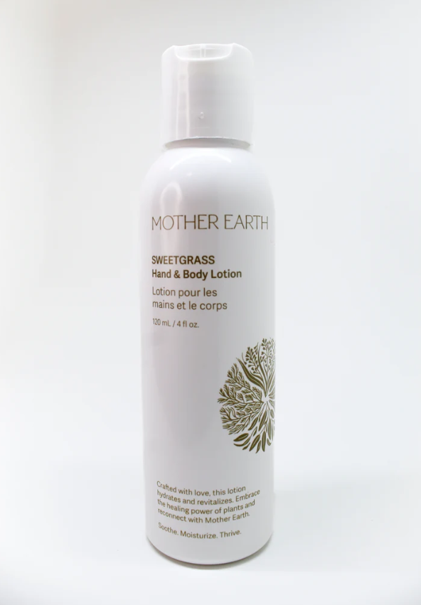 Infused with the gentle, sweet aroma of sweetgrass, this lotion honours one of the most cherished plant teachings. Rich in sunflower seed oil, shea butter, and coconut oil, it deeply nourishes while aloe vera soothes and hydrates. Lightweight yet replenishing, it leaves your skin soft, smooth, and naturally refreshed—like a calming breath of fresh air.