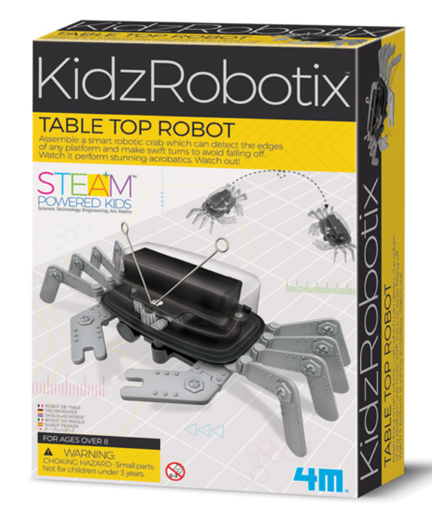 Assemble a robot crab that will detect the edge of any platform and then turn away with our Table Top Robot.