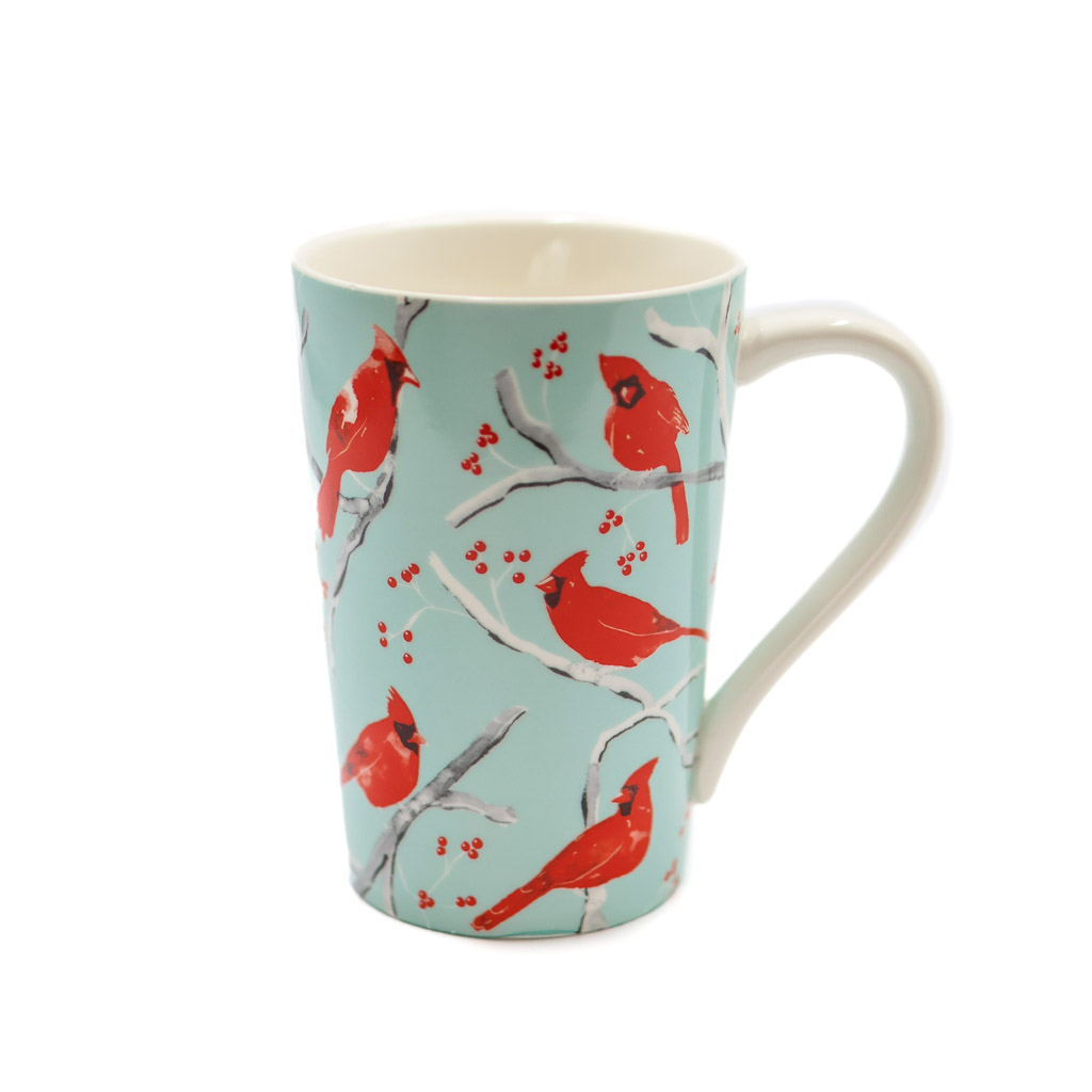 Beautify any hot beverage by enjoying it in this striking Cardinal Tall Mug. Crafted out of stoneware, this tall turquoise mug features an array of gorgeously-painted cardinals perched among berries and branches to help brighten your morning coffee or tea.