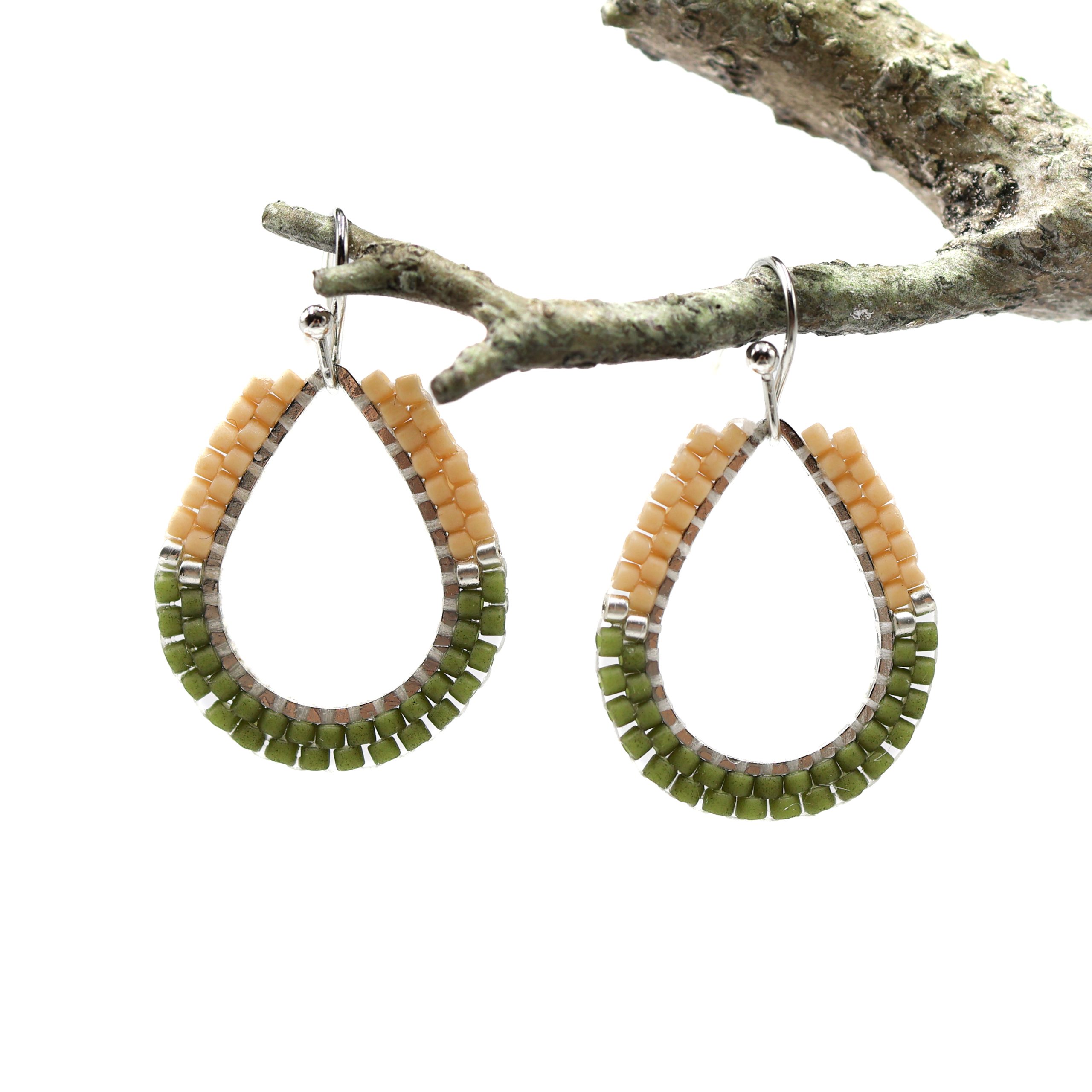 Teardrop Earrings Green by Métis Girl Beads