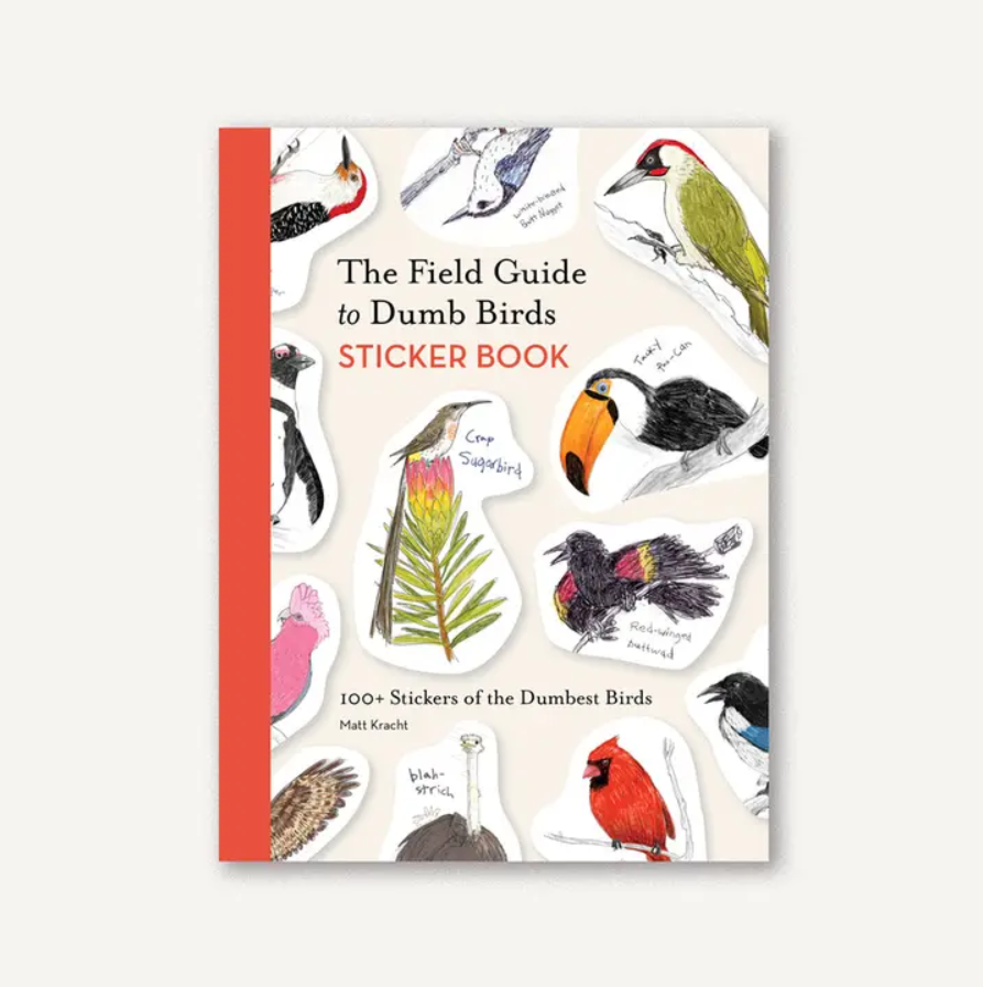 The Field Guide to Dumb Birds Sticker Book rounds up the funniest, dumbest birds from across professional birding amateur Matt Kracht’s hilarious and sometimes profane bestselling Field Guide to Dumb Birds series. Each of the 100+ die-cut stickers features a colorful illustration and the dumb name the bird has earned for being so annoying.