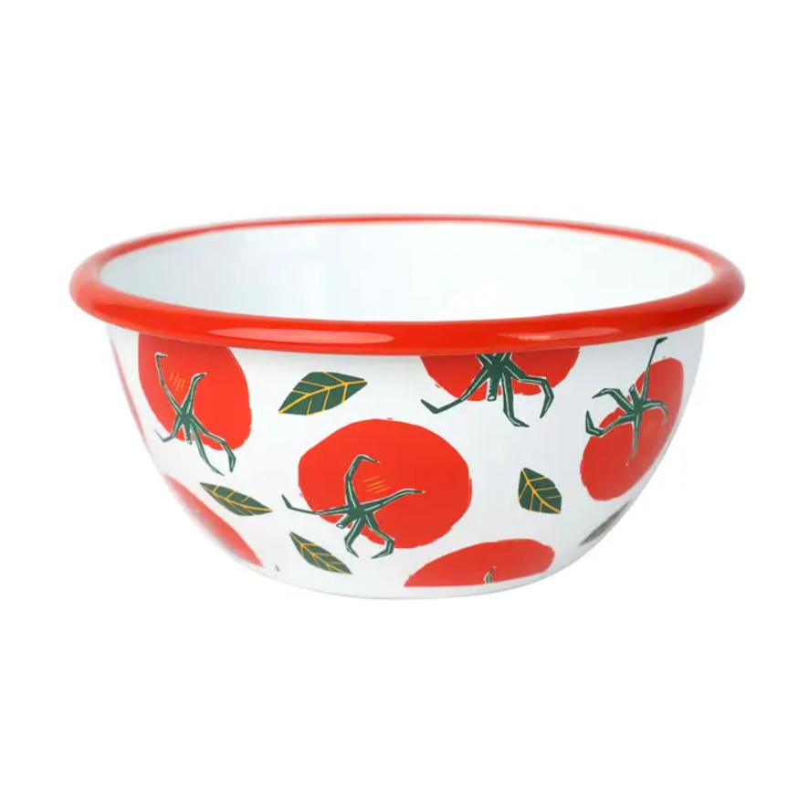 This Tomato Red Enamel Bowl brings a bright, fresh look to any table. Part of the Bon Appetit collection, it celebrates the tomato trend seen across kitchens and homeware. Made from heavy-grade steel, each bowl is hand-dipped in enamel several times and fired at a high temperature to achieve its rich color and smooth finish. The tomato design adds a bold touch, making it perfect for serving salads and sides at everyday meals or al fresco gatherings.