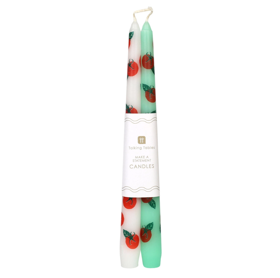 Tomatoes are a key trend for tableware and these candles work both as a standalone or alongside the other tomato themed pieces in our Bon Appetit collection. The decorative, playful design comes in a pair (one green candle and one white) and is delicately detailed with tomatoes throughout. Unscented as not to interfere with food aromas, they have a burn time of up to five hours each.