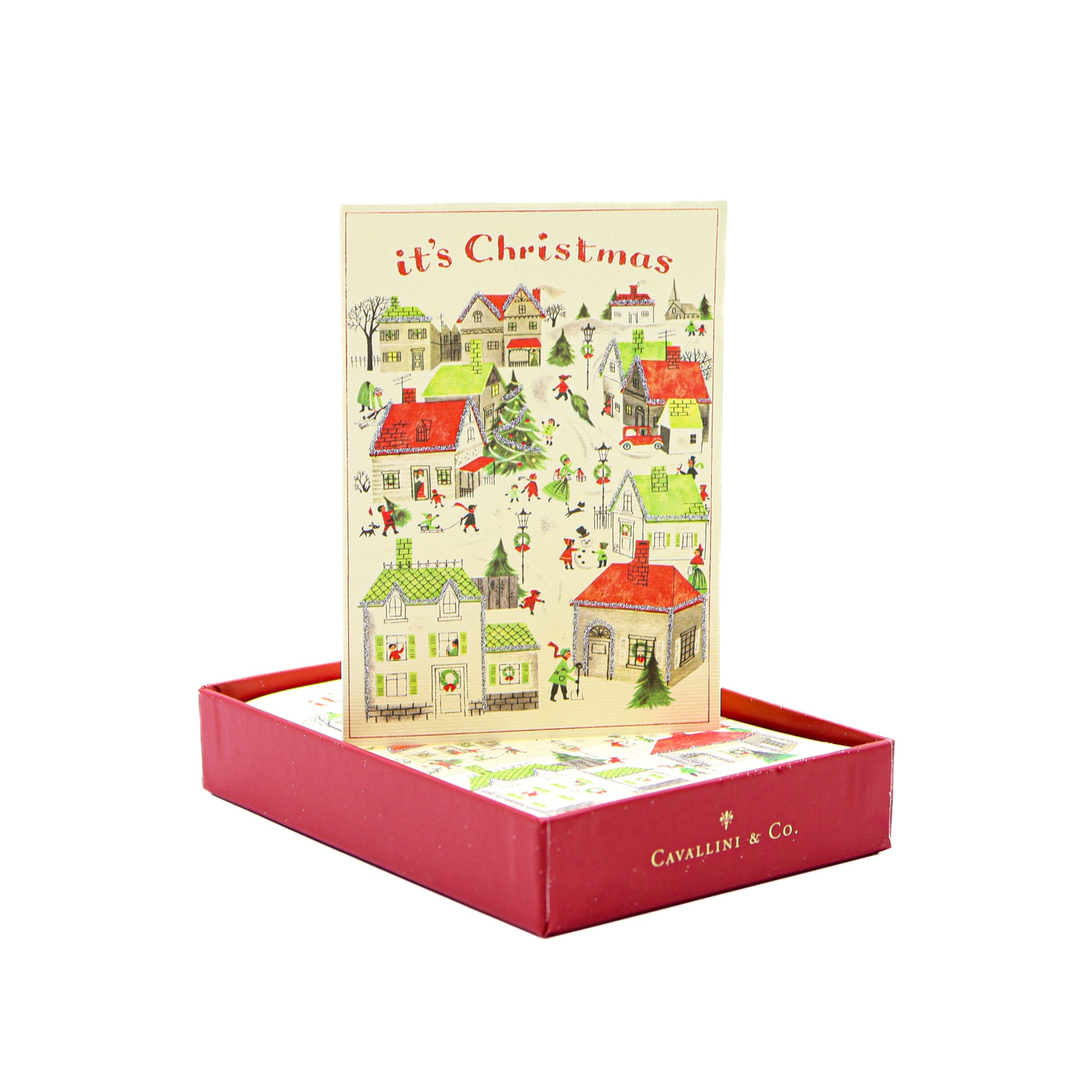 Vintage ‘Christmas Village’ Glittered Holiday Card Set by Cavallini Papers & Co.