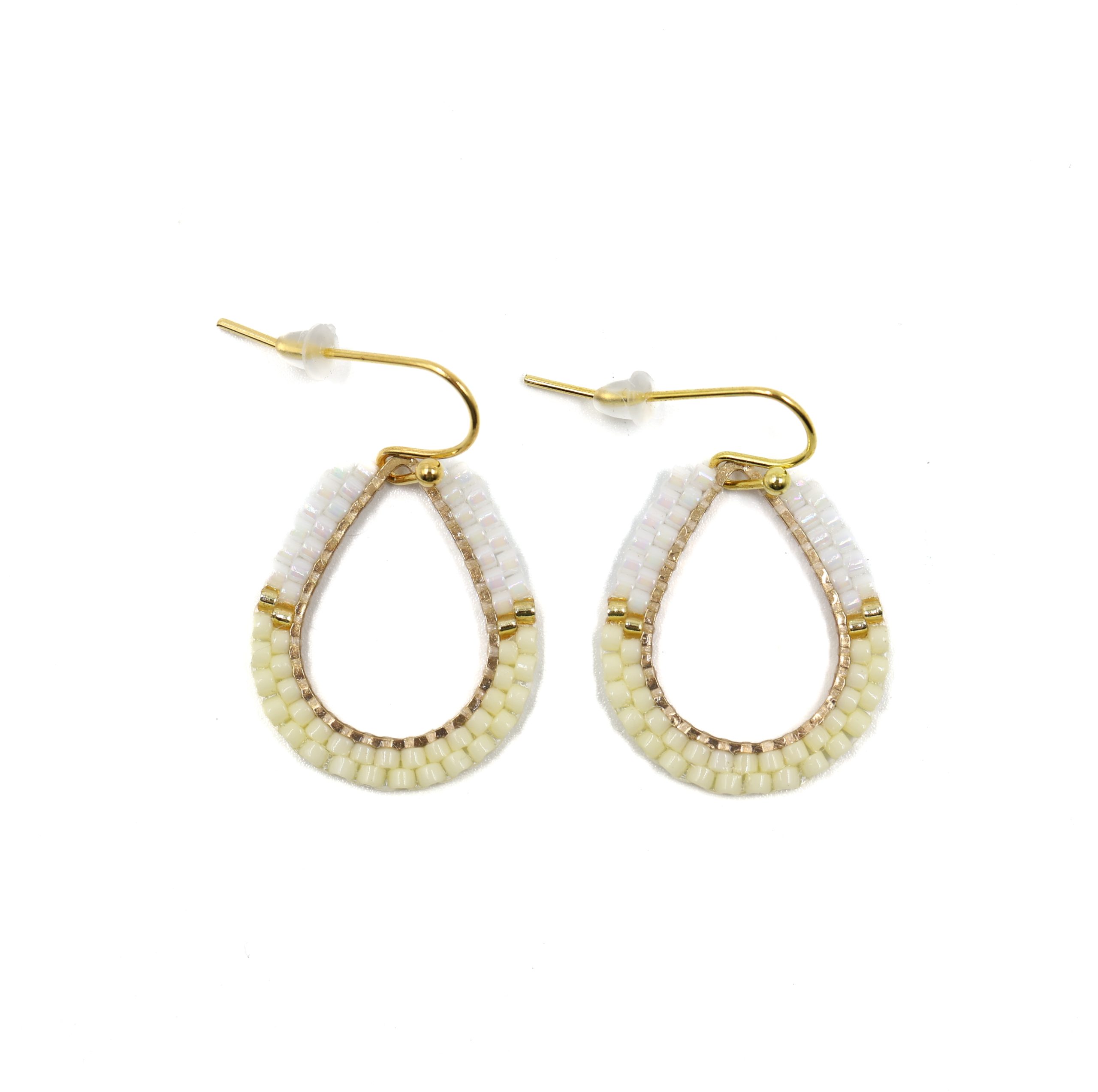 White & Cream Teardrop Earrings by Métis Girl Beads