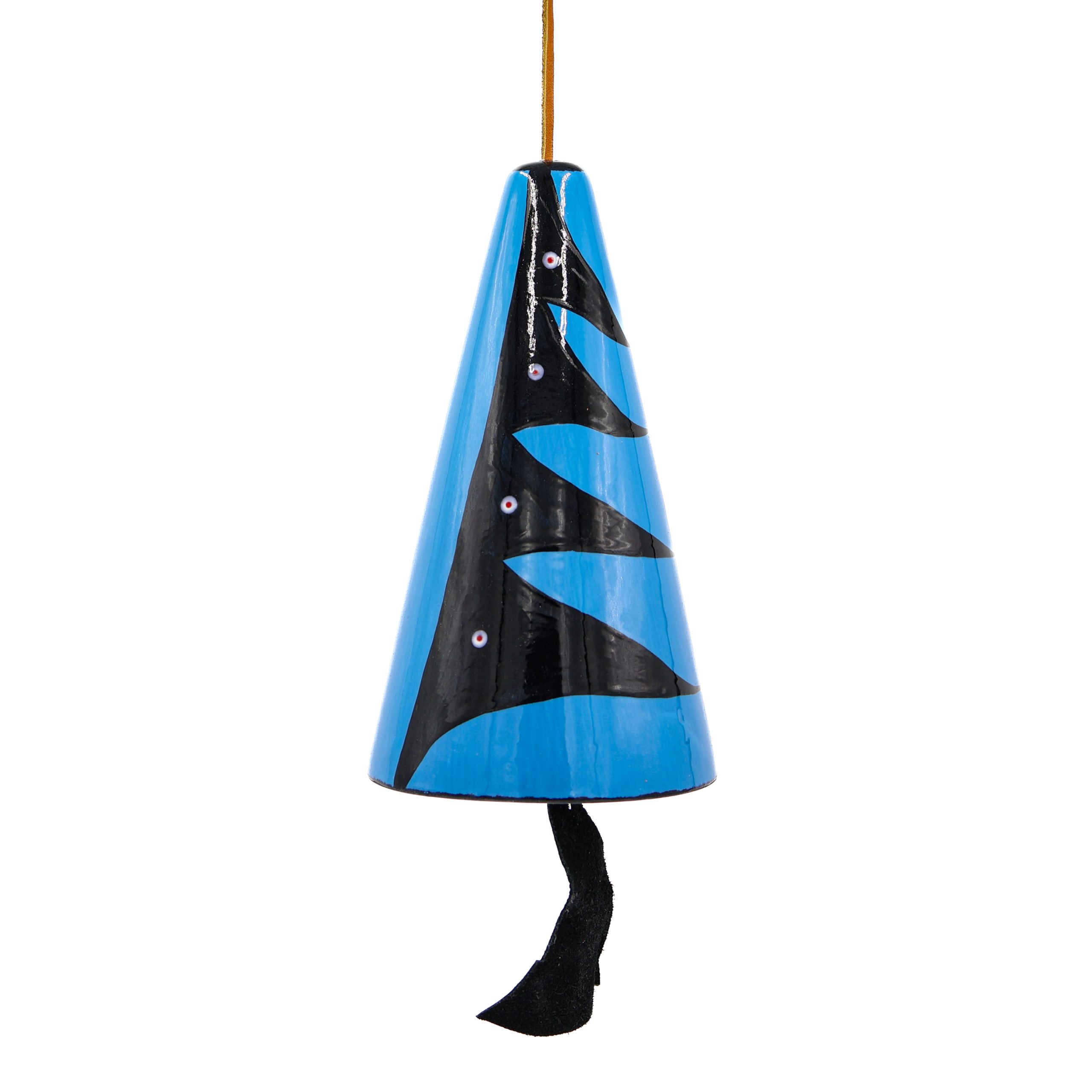 The Large Wind Bell in Blue by Red and White Studio. A clay bead on the hide cord emits a sound when the wind bell is hung.