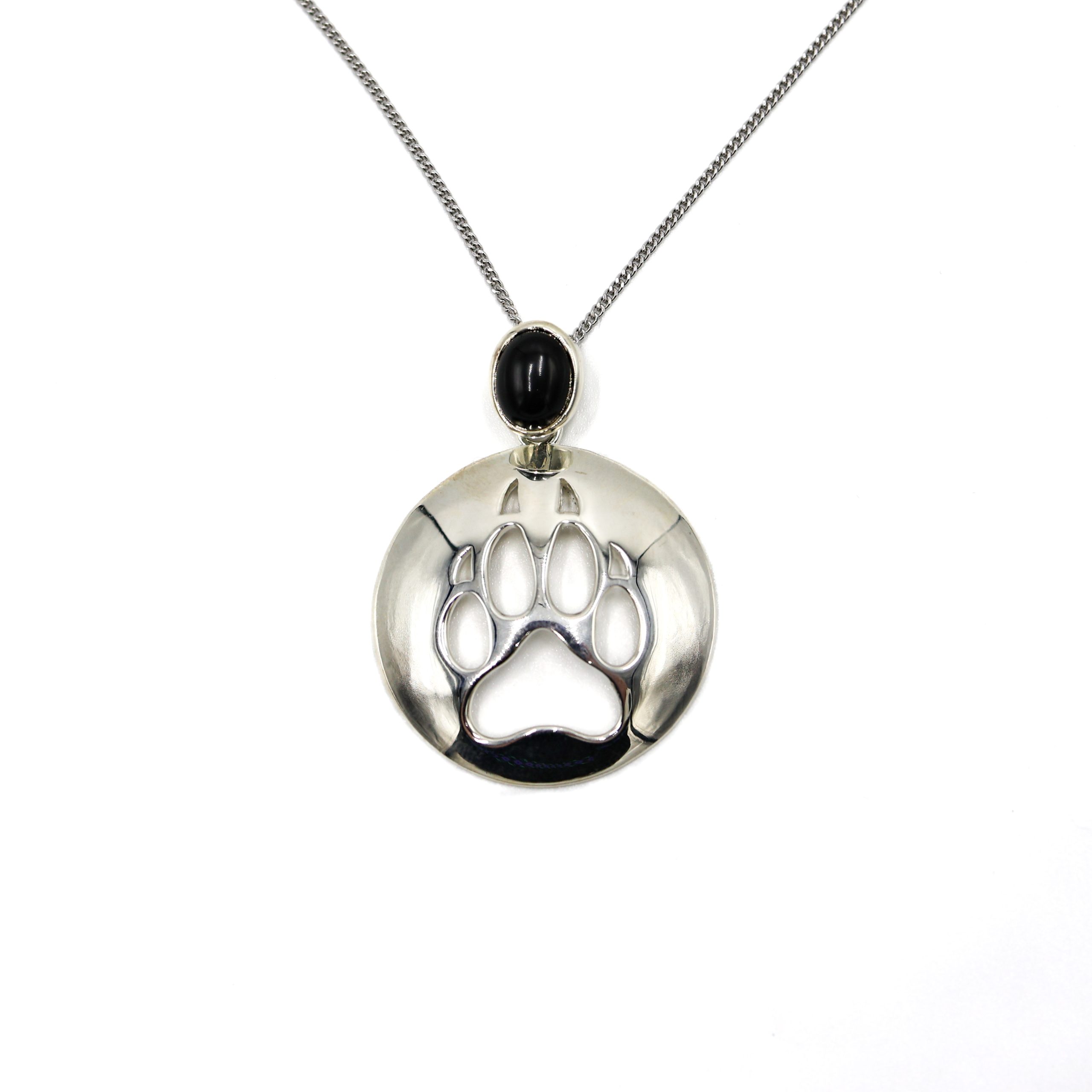 Wolf Paw Pendant with Chain and black Onyx stone by Medicine Bear Arts.