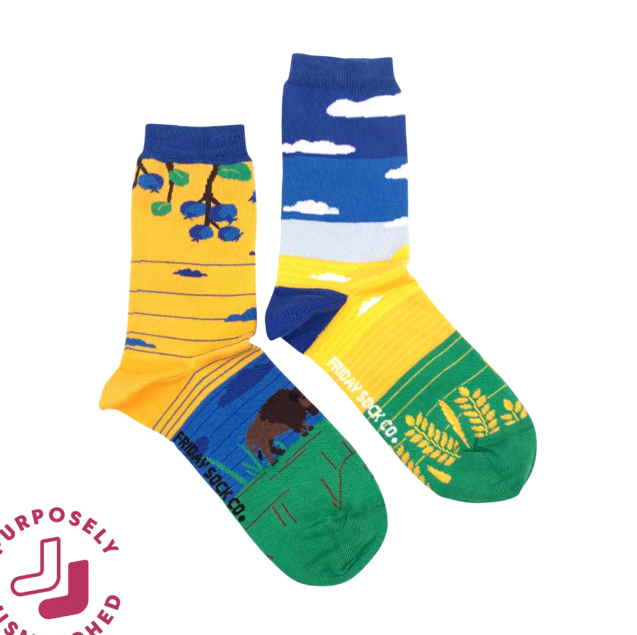 Little socks on the prairie. Show off your love of wide open spaces, saskatoons and bison with these socks! Represent The Prairies with our Canadian Landscape Collection.