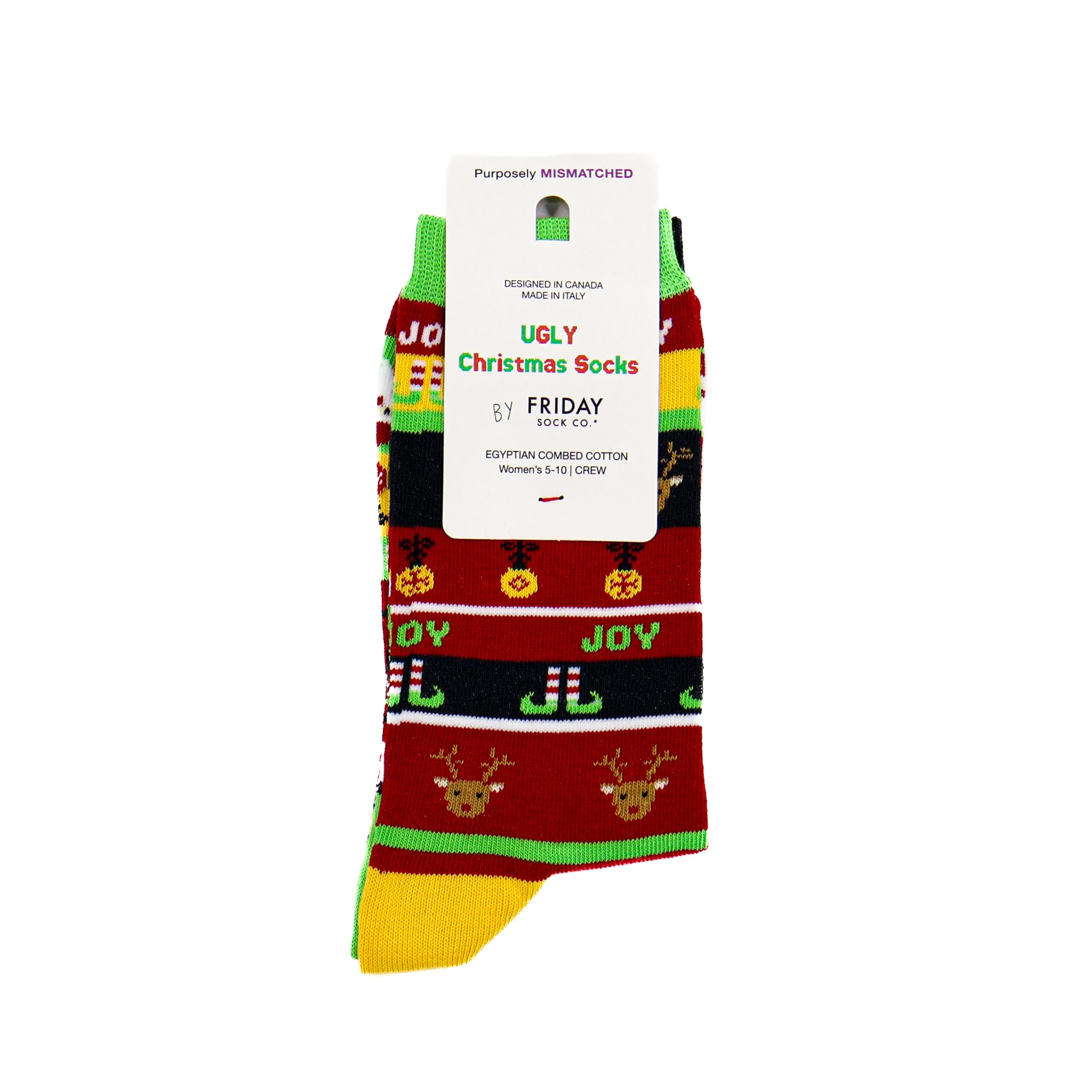 Look great from head to mistle-toe in these Mismatched Ugly Christmas Merry & Joy Socks!