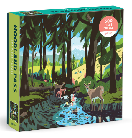 500 PIECE PUZZLE – Woodland Pass 500 Piece Puzzle by Galison features a calming, evergreen scene of woodlands and wildlife. This puzzle is just the right level of challenge for the whole family to join in on for hours of puzzling fun! The box includes an insert with the full puzzle image for reference.