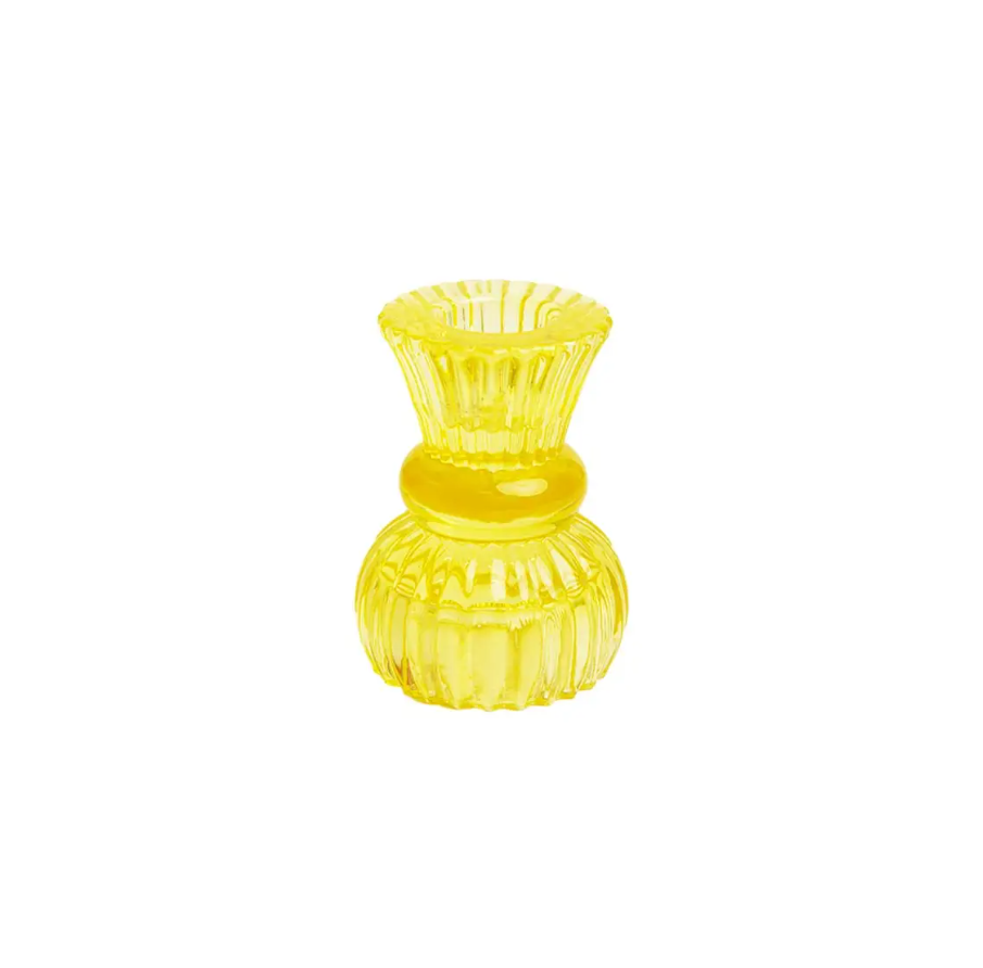 In a bright yellow colour, this little glass candle holder will add a pop of colour into the home décor, candle or table decoration ranges in your store. With a unique design, this candle holder can be used for both candlesticks and tealights – simply flip over to reveal the alternative tealight candle holder. Perfect for a summer dinner party with friends or all year round for a romantic candle lit meal when paired with our tall wax candles or twisted candles.